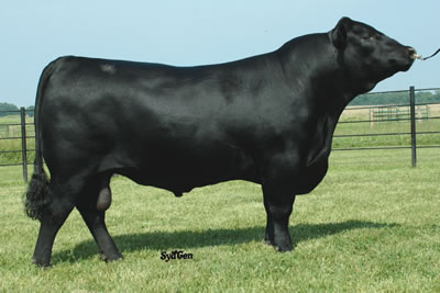 TURBO was top-selling bull in our 2007 sale, after posting the top weaning and yearling weights in his contemporary group. Turbo is very strong phenotypically, being named the 2008 Missouri State Fair Grand Champion Bull. He ranks among the top proven sires for YW and is recognized to improve udder quality and moderate milk. He is also strong for DOC and HP. |